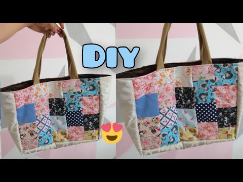 BOLSA DECORADA COM RETALHOS DE TECIDO - DIY